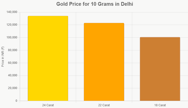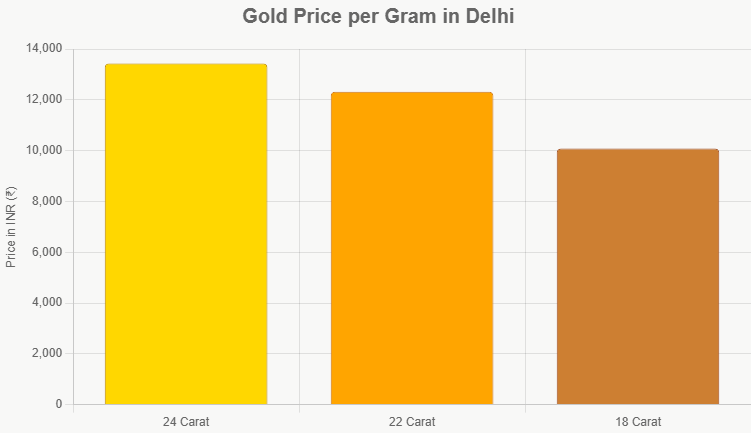 - 24 Carat (Pure Gold): ₹13,433 per gram / ₹1,34,330 per 10 grams